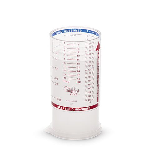 The Mini Measure-All® Cup isn’t your average measuring cup. The cup can accurately measure both dry and wet ingredients depending on which side you use and is especially useful for sticky ingredients. The push-up design lets you get out every bit of ingredients like peanut butter, mayonnaise, molasses, honey, and more.
